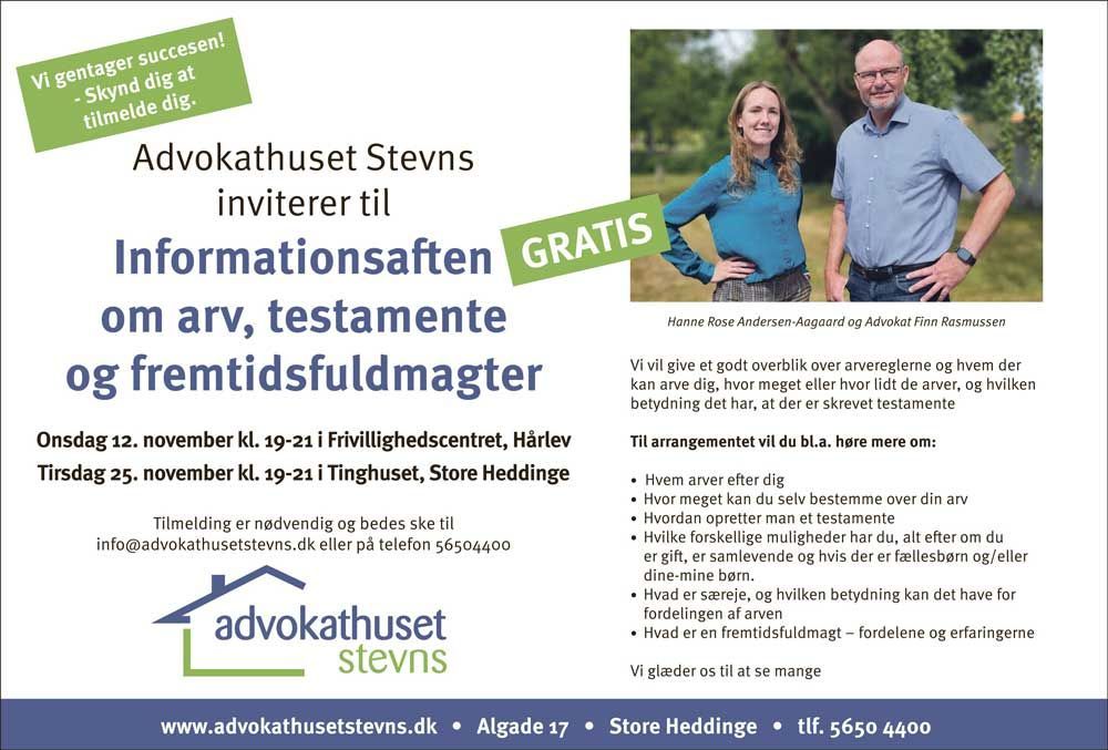 Har du brug for en ægtepagt kan Advokathuset Stevns hjælpe dig med at få udarbejdet den så den passer ti jeres situation. Kontakt os på telefon 56 50 44 00 eller på info@advokathusetstevns.dk
